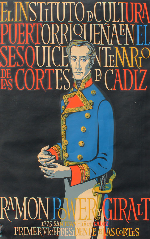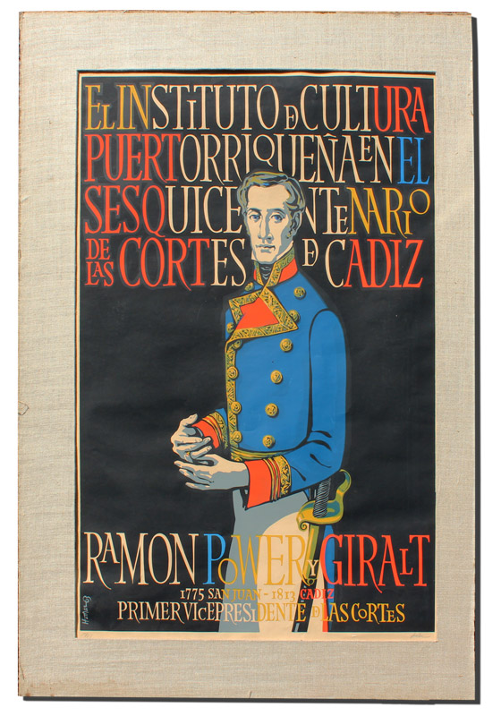 HOMAR, Lorenzo, (Puerto Rican, 1913-2004): ''Ramon Power y Giralt'', Three-Quarter Length Portrait in Military Uniform, Silkscreen, 29 1/4'' x 19 5/8'', pencil signed lower right, #'d lower left 5/30, signed in the plate, printed in 1963, affixed to fabric mat, 35'' x 24''.