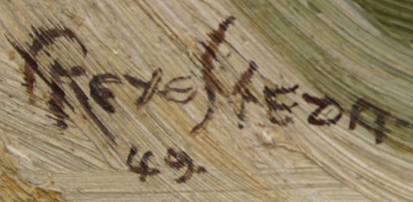 CONDITION: Small Portion of board missing in the lower left corner, and fleck of paint loss in center of painting.