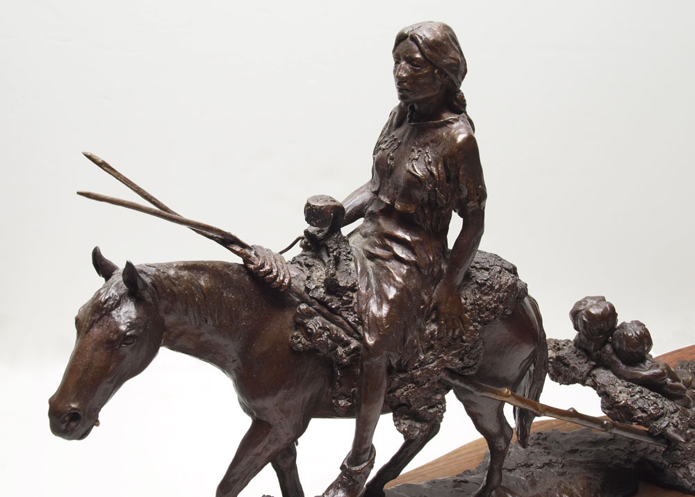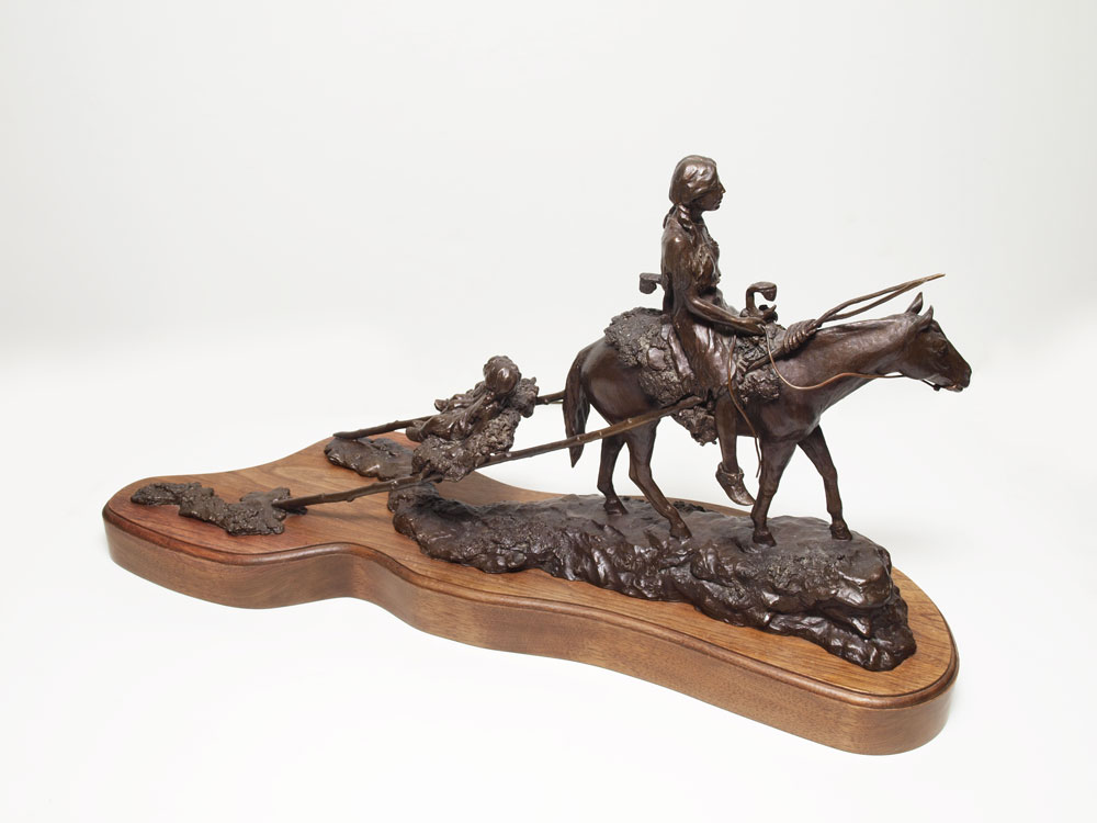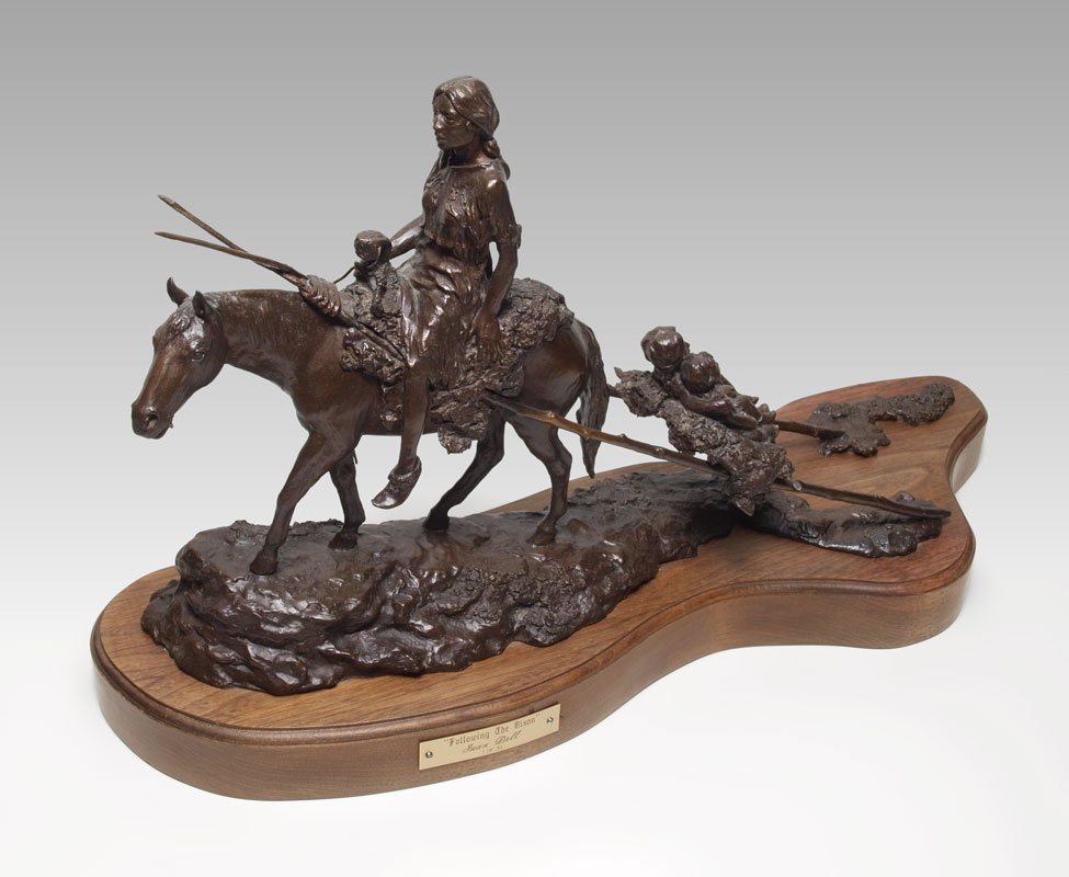 DELL, Juan, (American, 1933-): ''Following the Bison'', Bronze, 11 1/2'' x 22'', signed, 24'' with wooden plinth, numbered 1-30, W foundry mark.