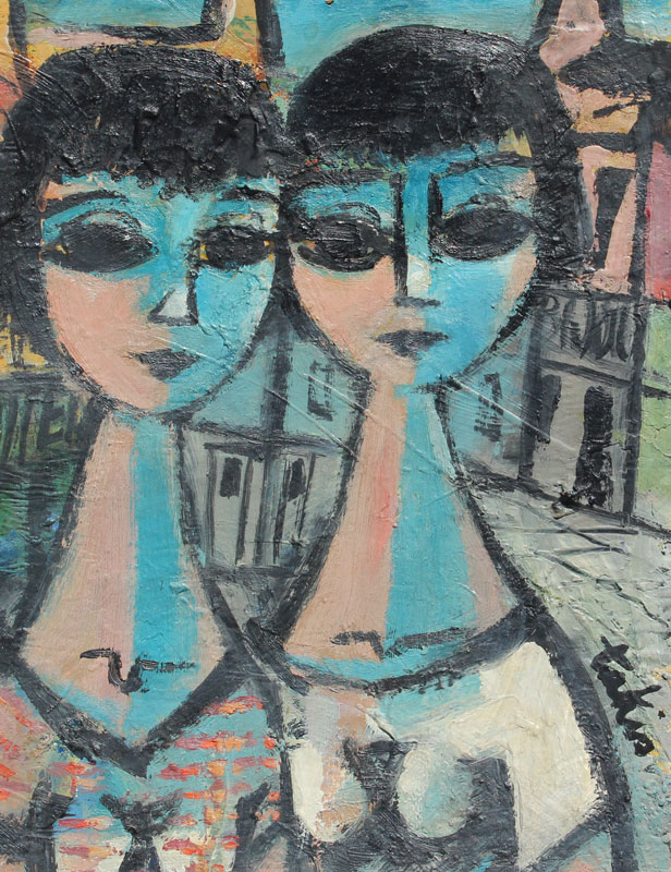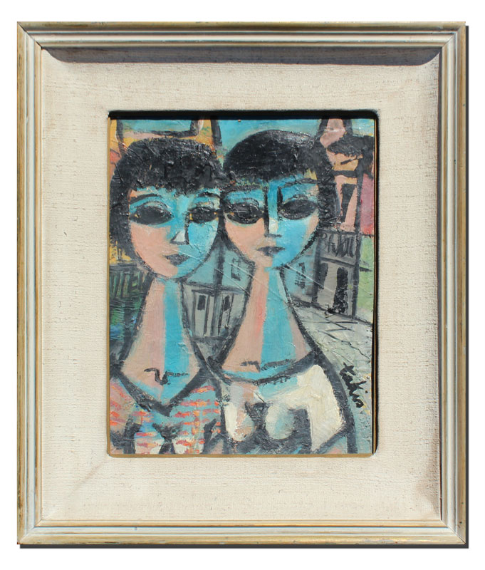 TAKIS, Nicholas, (American, 1903-1964): Two Young Females in a Paris Landscape, Oil/Board, 11 1/4'' x 8 5/8'', signed lower left, original frame, 16 1/2'' x 14 1/4''.