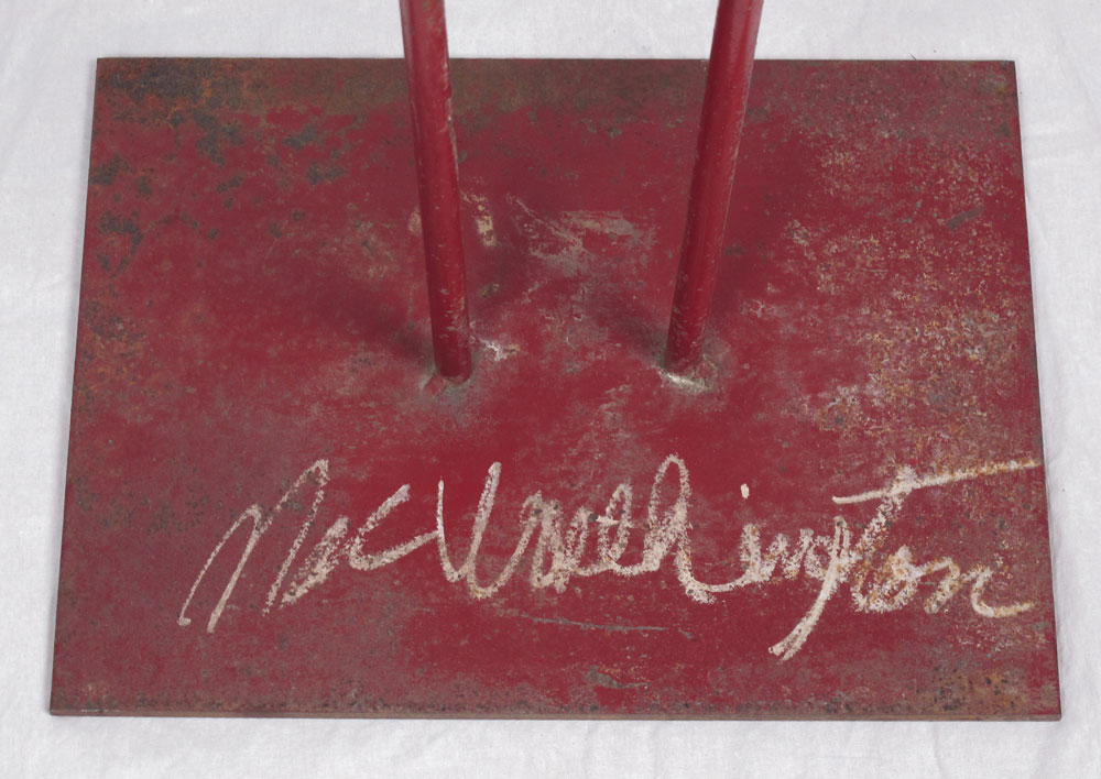 WORTHINGTON, Mac, (American, 20th C.): Metal art sculpture, 55'' h, signed on base.