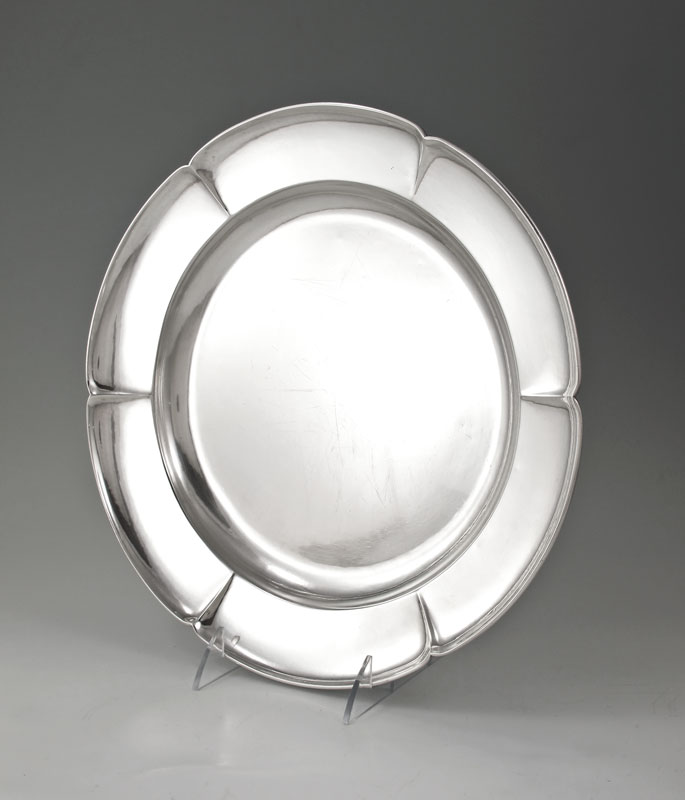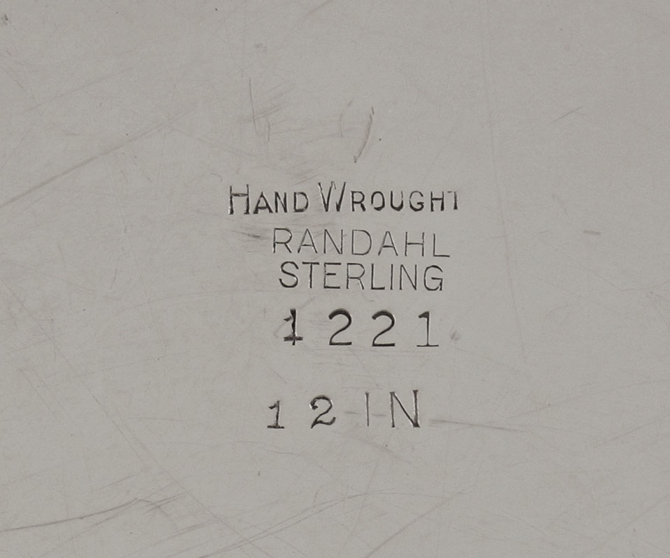 RANDAHL STERLING SILVER ROUND PLATTER: Lobed rim, marked Hand Wrought Randahl Sterling 1221, 12 1/4'' dia.. Approx. 23.6 troy oz.