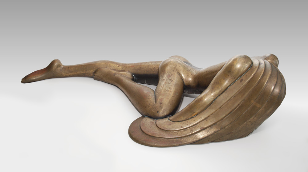 BENNETT, Tom, ATTRIB(American, 20th C.): Sprawling female nude, Bronze, 9'' h. x 36'', unsigned.