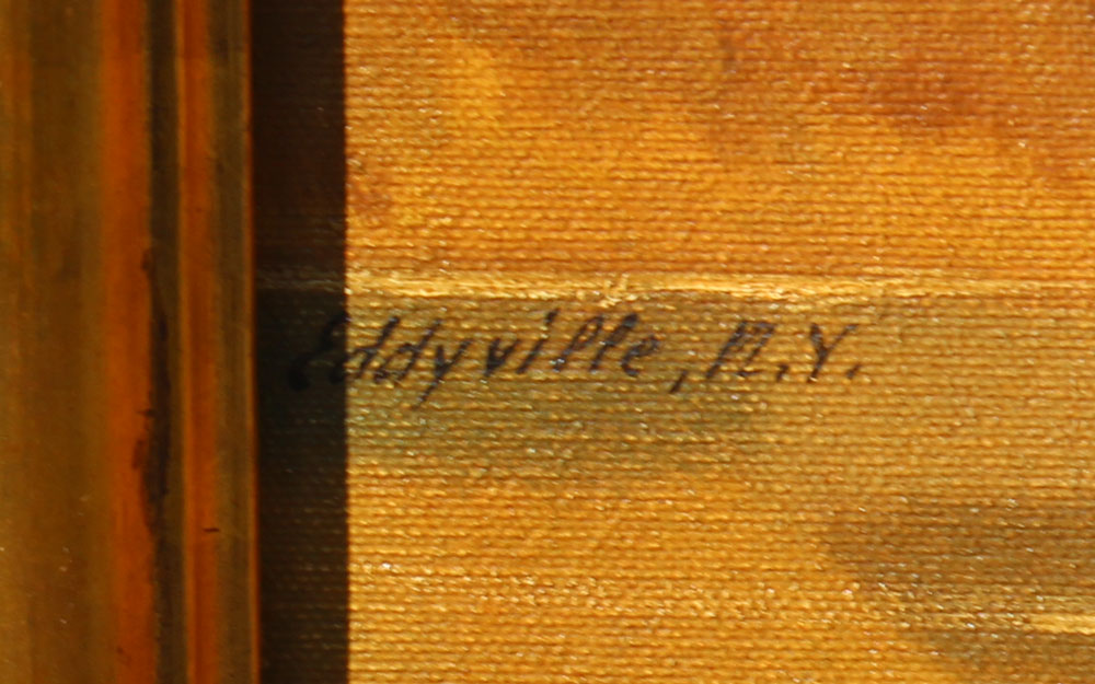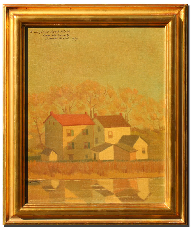 MELIK, Zaven, (American, 20th C.): ''Eddyville, New York'', Oil/Canvasboard, 19'' x 15'', signed upper left, dedicated to Joseph Scialdo, dated 1937, titled lower left, period gilded frame with minor wear, 19 1/2'' x 23 1/2''.