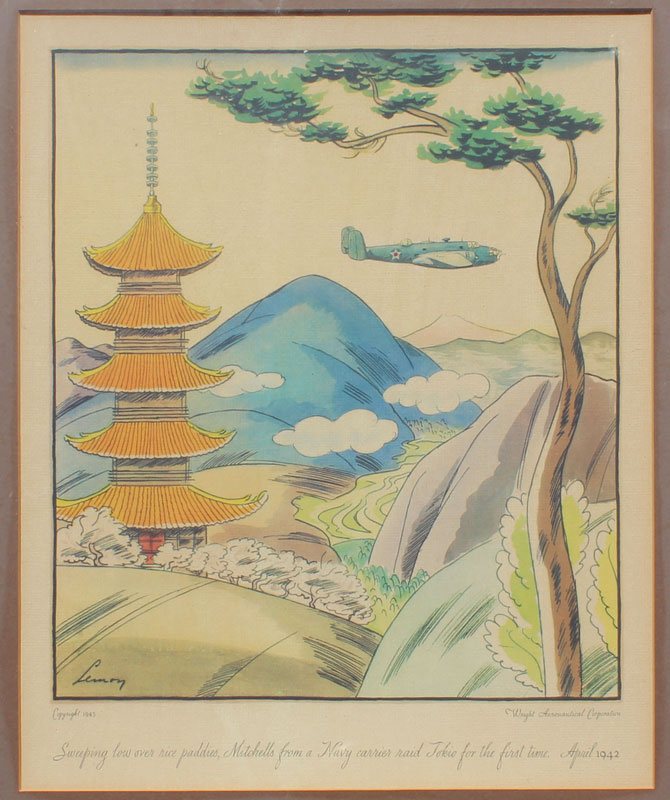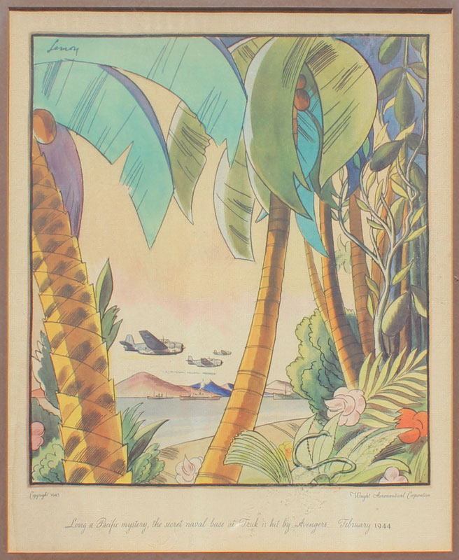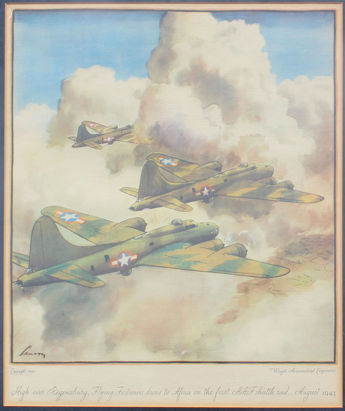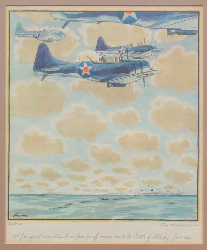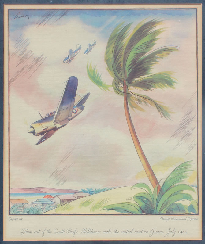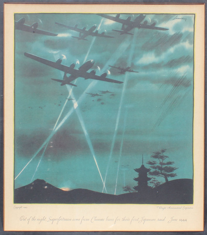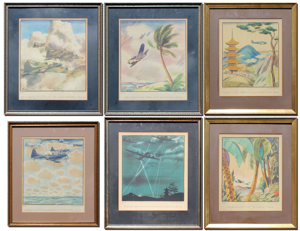 SET OF 6 WRIGHT AERONAUTICAL CORPORATION LITHOGRAPHS: Various WWII fighter planes, general sight size is approx. 14 1/2'' x 12 1/2'', frame size 21'' x 18''.