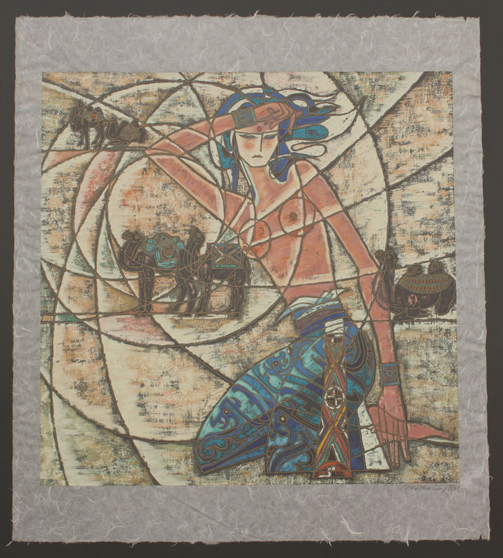TING SHAO KUANG, (Chinese, 1939-): Egyptian Motif Scene, Serigraph, 42'' x 38'', signed lower right, numbered lower left XL/C, float mounted, framed, 53'' x 50''.