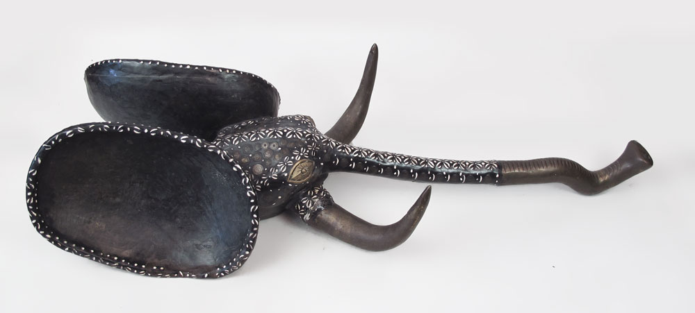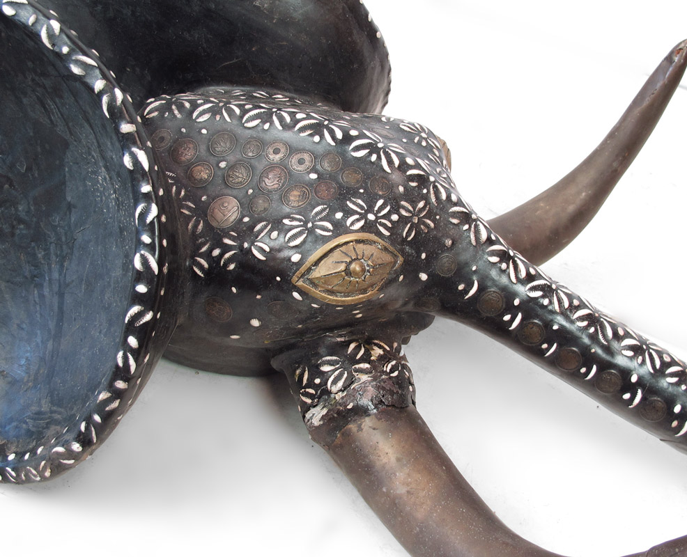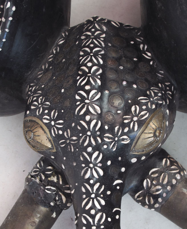AFRICAN CAMEROON TIKAR TRIBE ELEPHANT SCULPTURE WITH METAL 67'' x 23'' x 16''