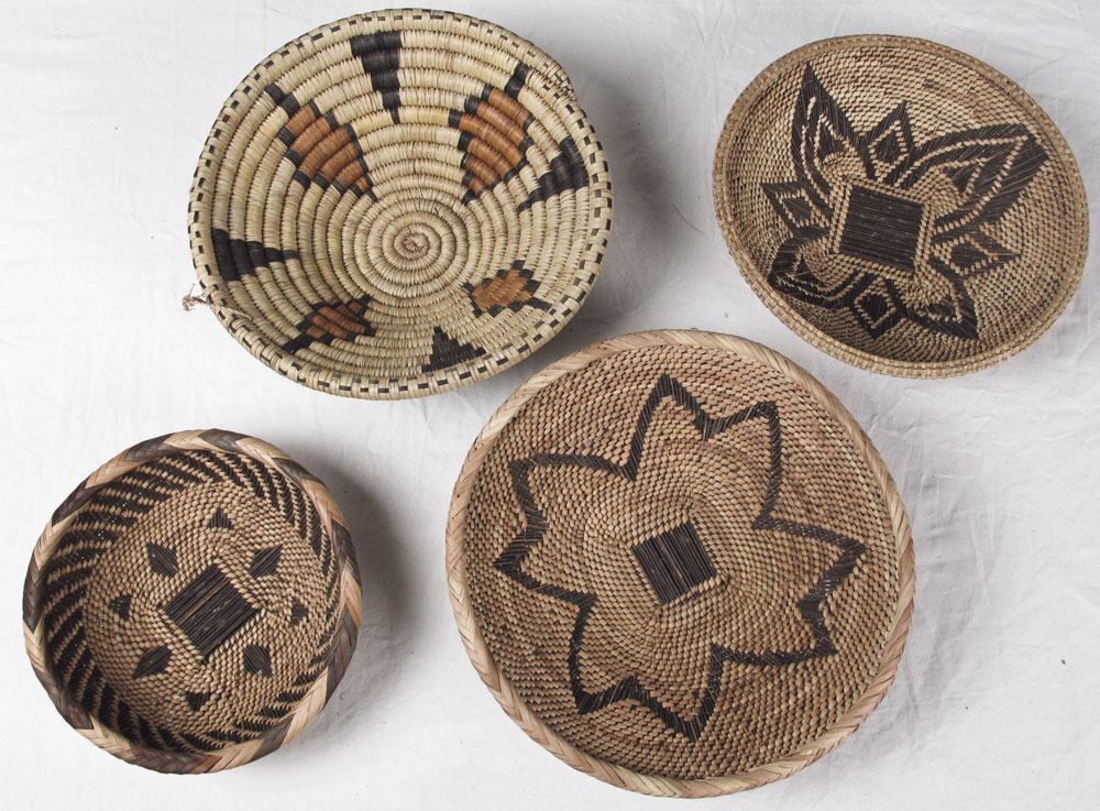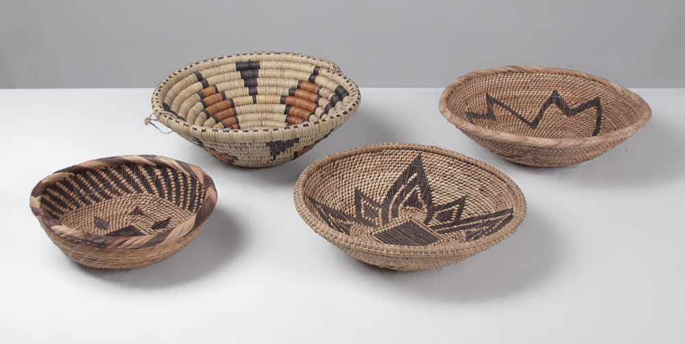 COLLECTION OF 4 NATIVE AMERICAN BASKETS: 20th Century collection of 4 Southwest Indian baskets of varying sizes. Largest measures 4'' h. x 11 1/2'' dia.