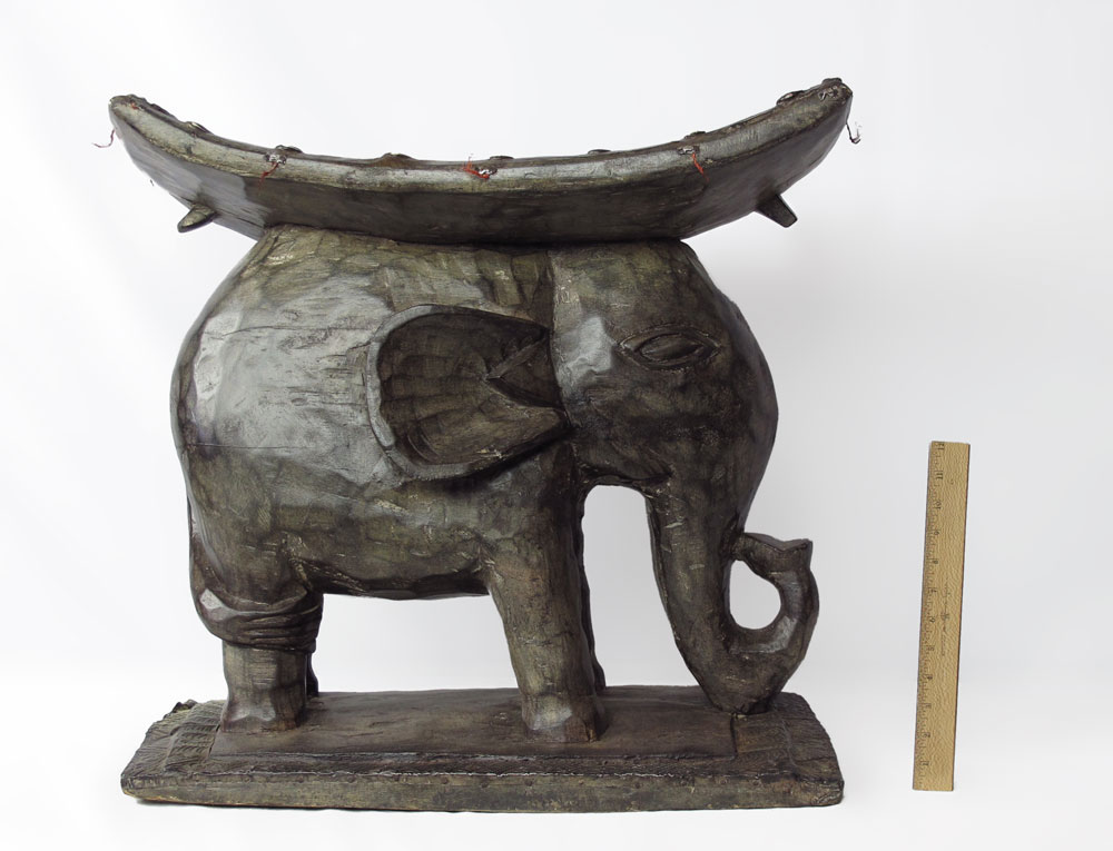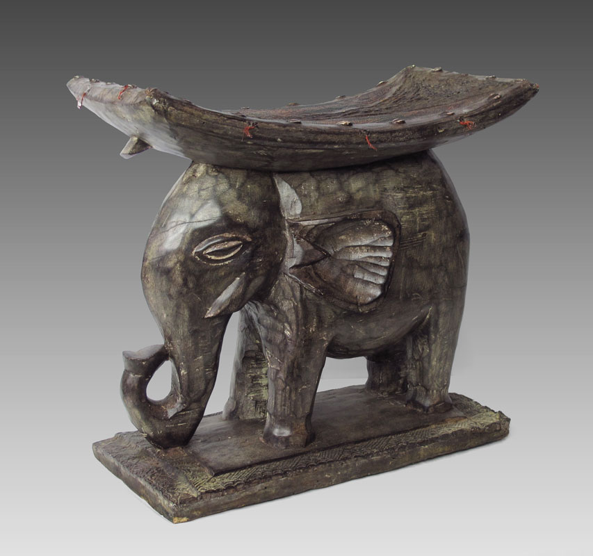 AFRICAN ASHANTI BEADED STOOL WITH ELEPHANT BASE, approx. 24 1/2'' x 13 1/2'' x 25''