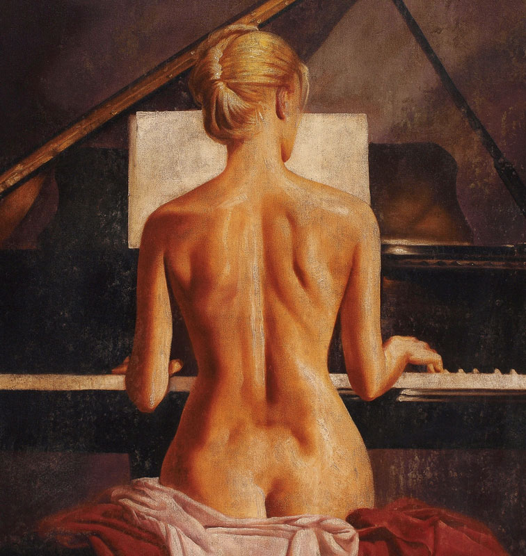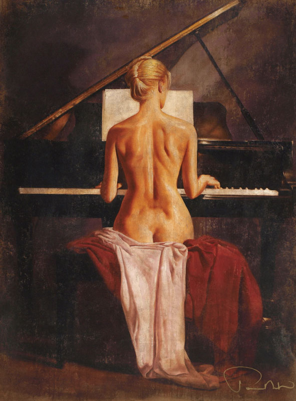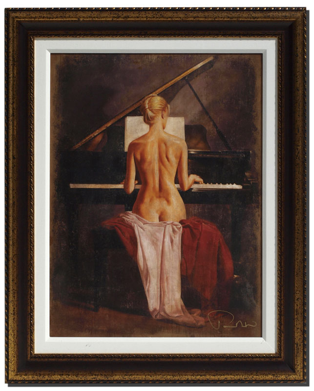 RUT, Tomasz, (Polish, 1961-): ''DIMINUEO'', Nude Piano Player, Giclee/Canvas, sight size 31 1/2'' x 24'', signed lower right, framed, 41'' x 35''.