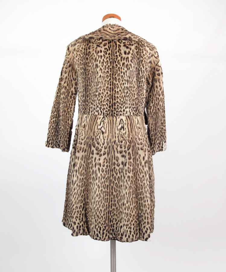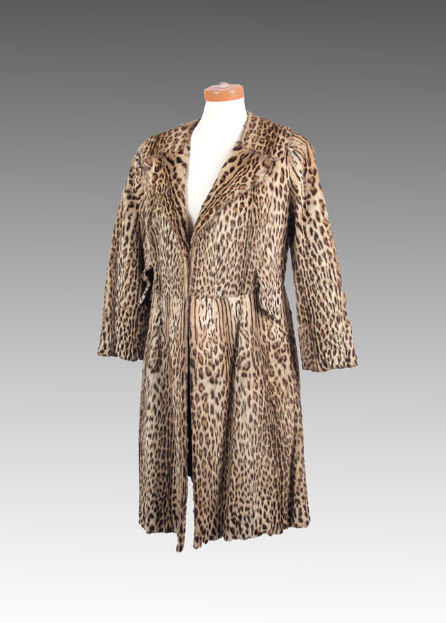 GEOFFREY CAT SPOTTED FUR COAT: Full length coat with full lapel, fitted at the waist. Measures approx. 40''l, 17'' across the shoulders. Georgeou Westchester label.