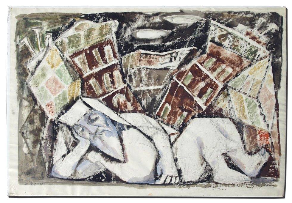 ROMANO, Emanuel, (Italian, 1897-1984): Reclining Priest, Watercolor With Body Color, sight size 24'' x 36'', signed lower left, unframed.