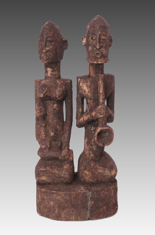 AFRICAN DOGON PRIMORDIAL COUPLE WITH LIBATIONS 19'' x 8'' x 6''