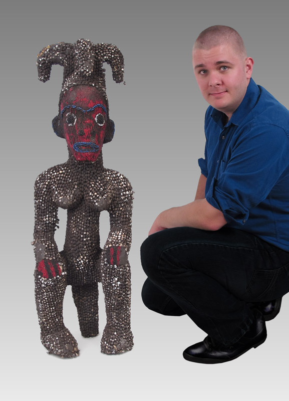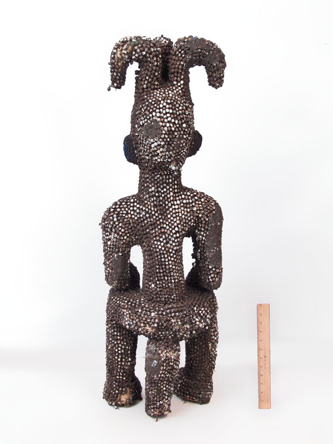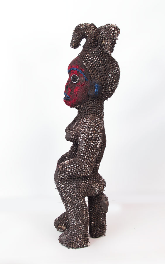 AFRICAN CAMEROON BAMUM BEADED PRESTIGE FIGURE 40'' x 14'' x 12''