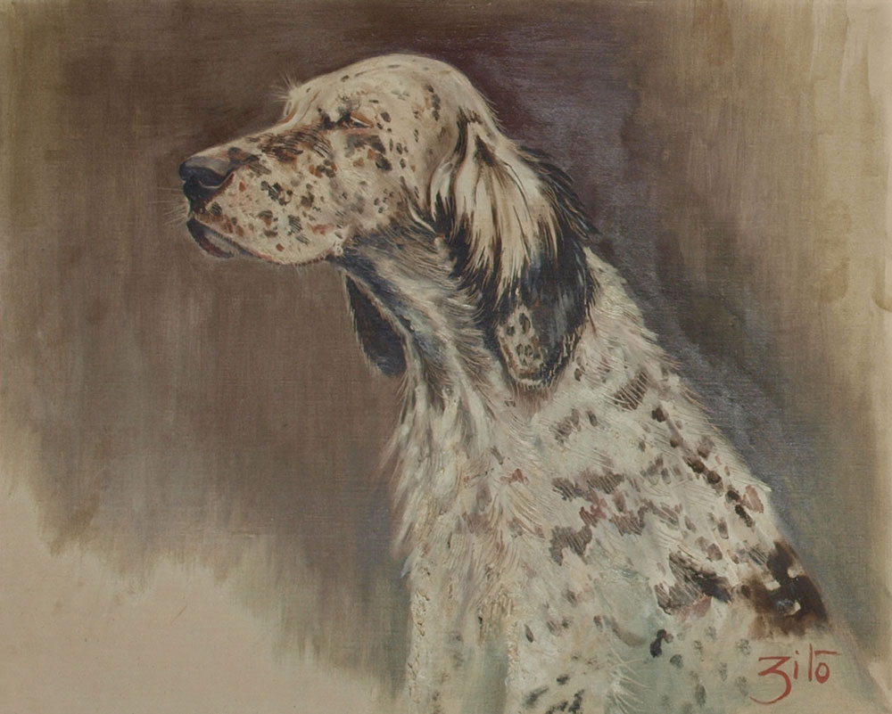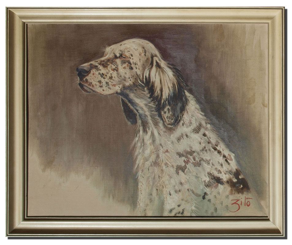 PAINTING OF AN ENGLISH SETTER DOG SIGNED ZITO: Signed lower right Zito. OIL/Masonite, 24'' x 30'', Contemporary frame 27 1/2'' x 33 1/2''.