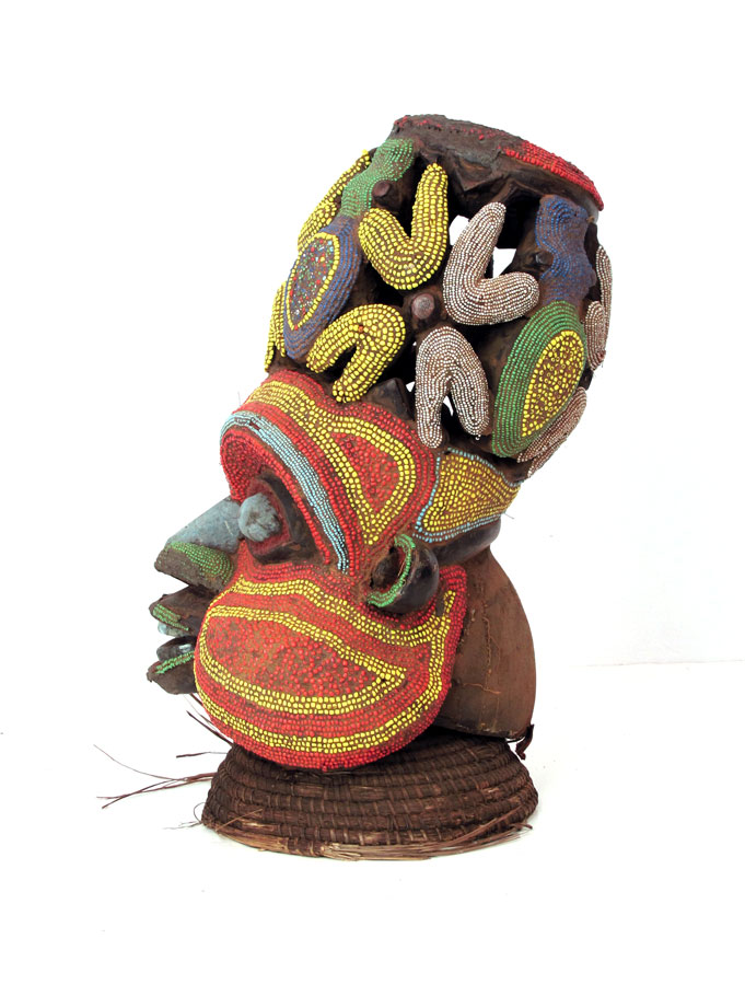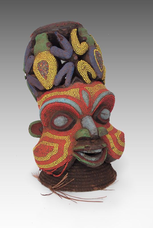 AFRICAN CAMROON BAMUM BEADED MASK 20'' x 11'' x 11''