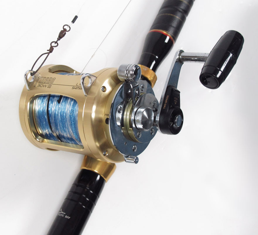 SHIMANO TIAGRA 30W LRS REEL & DOGFISH CUSTOM FISHING ROD: Rod and reel combination to include 1) Shimano Tiagra 30W LRS reel. 2) Dogfish Stik custom rod, 6', 30 / 50 lbs line. Sold with Tiagra neoprene reel cover.