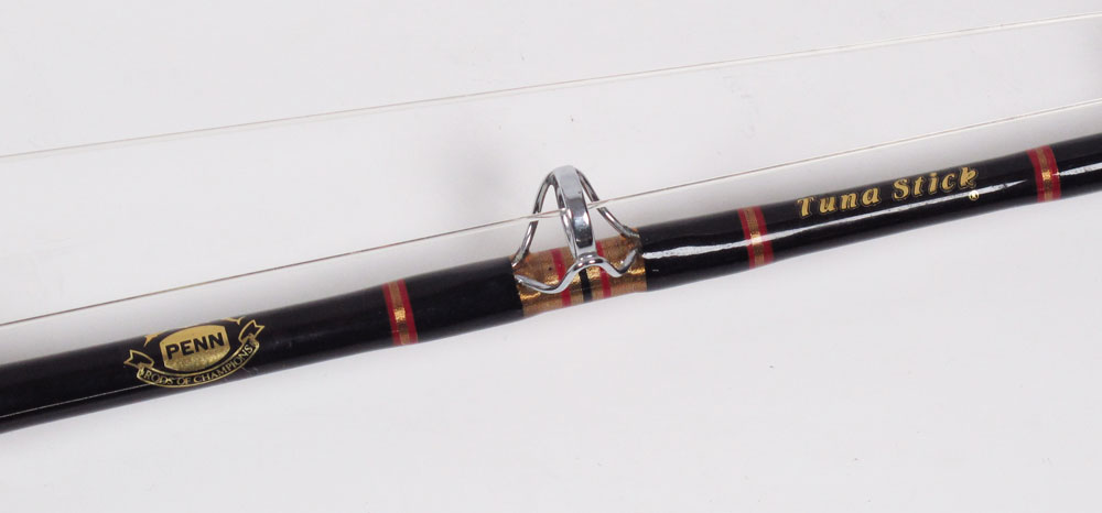 SHIMANO TIAGRA 16 ROD & PENN TUNA STICK FISHING ROD: Rod and reel combination to include 1) Shimano Tiagra 16 reel. 2) Penn ''Tuna Stick'' rod, 5' 6'', 40-80 lbs line. Sold with Shimano neoprene reel cover.