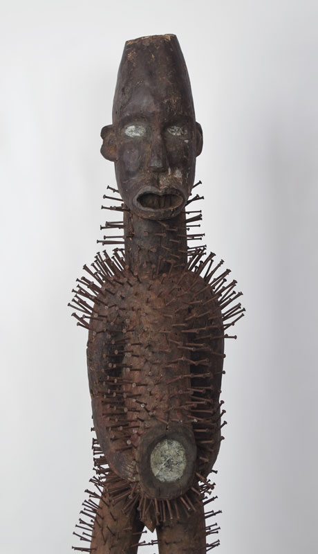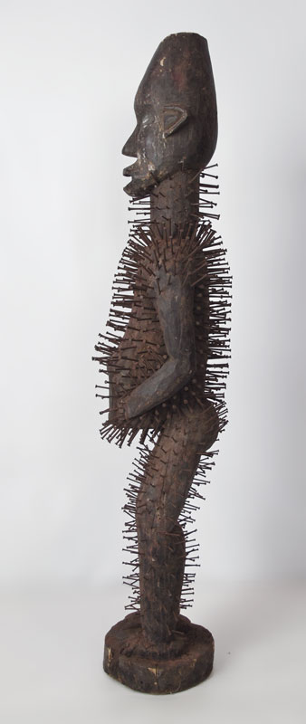 AFRICAN REPUBLIC OF CONGO BAKONGO NAIL FETISH FIGURE 60'' x 14'' x 14''