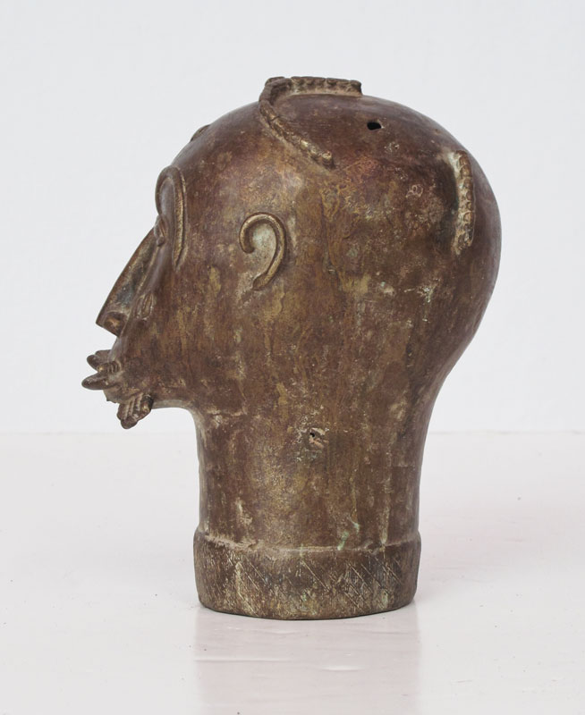 AFRICAN SMALL BRONZE HEAD SCULPTURE 9'' x 5'' x 6''