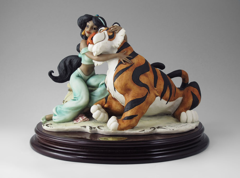 GIUSEPPE ARMANI FLORENCE SCULTURE d'ARTE JASMINE & RAJAH LIMITED EDITION FIGURINE: For Walt Disney, 1996 ink signed, dated 9/96 and numbered 787/1200, model 410C with original box, usual certificates; framed Limited Edition certificate and signed/dated Certificate of Verification with edition number. 8''h., 11'' x 8 1/2'' base.