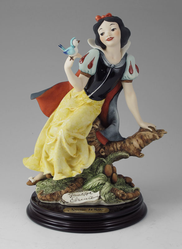 GIUSEPPE ARMANI FLORENCE SCULTURE d'ARTE SNOW WHITE FIGURINE: 1993 Walt Disney Snow White with blue bird figurine #209C, 10 1/2''h., with original box, receipt & certificate.