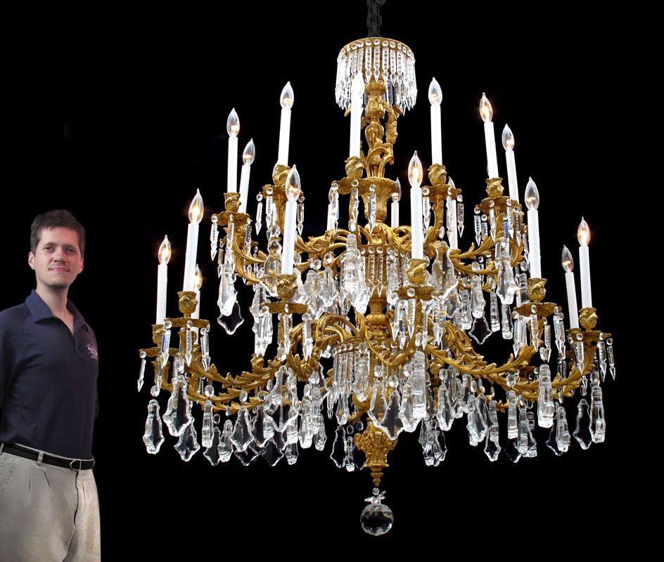 PALATIAL ITALIAN BRASS AND CRYSTAL CHANDELIER: 24 light, measures approx. 48''l (excluding the chain) x 45'' dia. Purchased in Florence Italy mid 1990's.