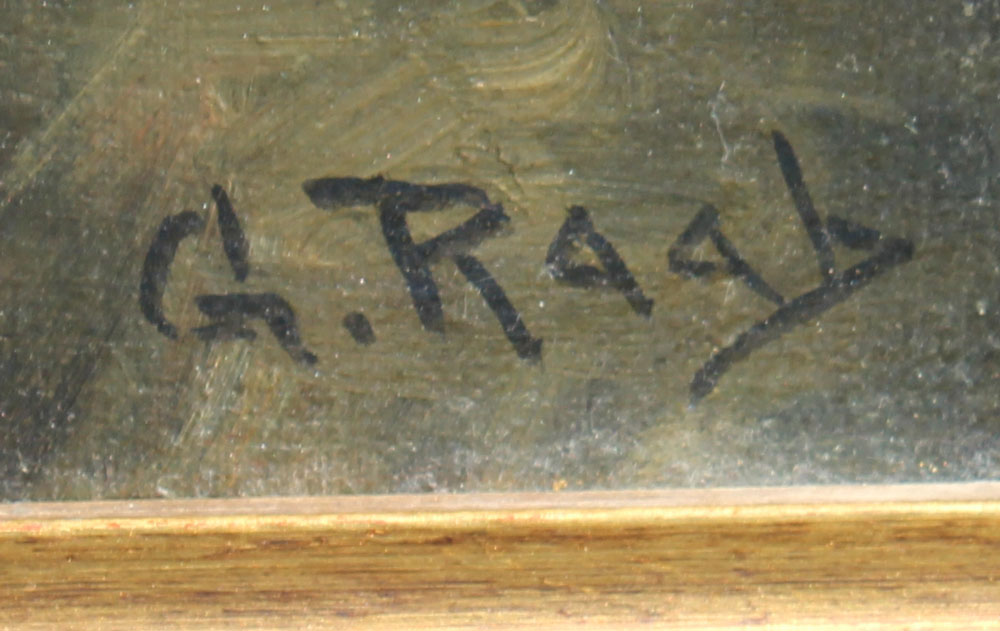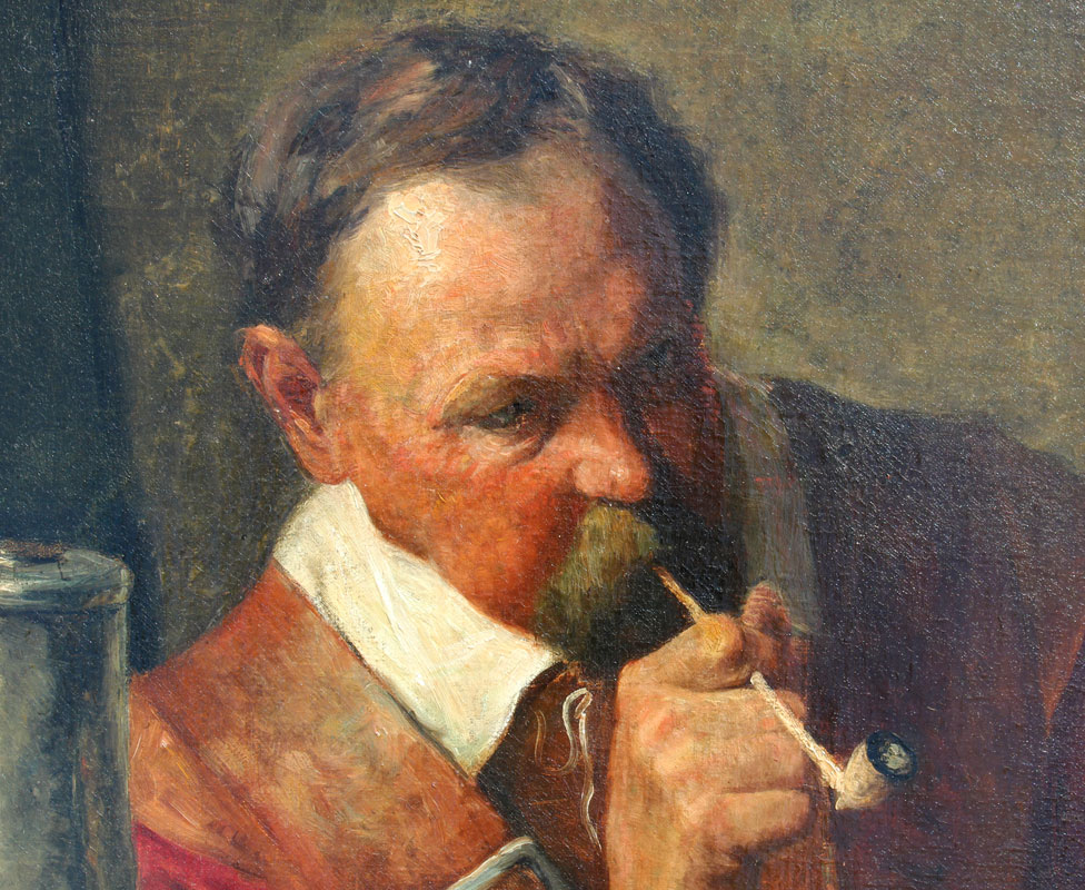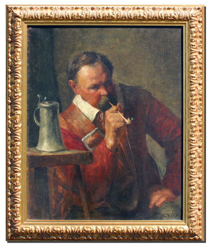 RAAB, George, (American, 1866-1943): Cavalier smoking a pipe in a tavern interior, OIL/Canvas, 30 3/4'' x 24 1/2'', signed lower right, encased in later contemporary carved and gilded frame, 37'' x 31''.