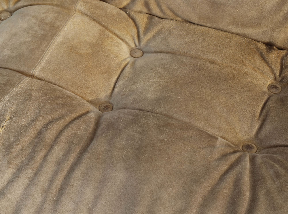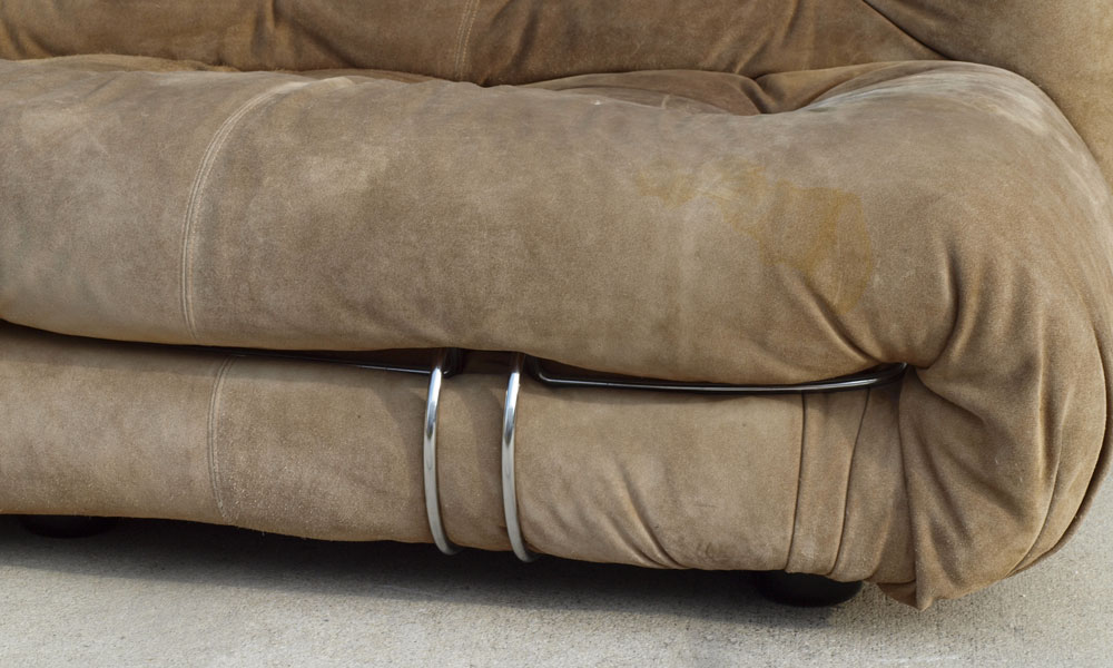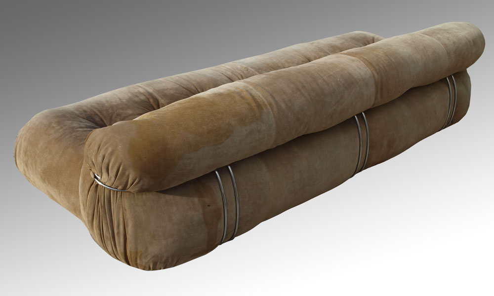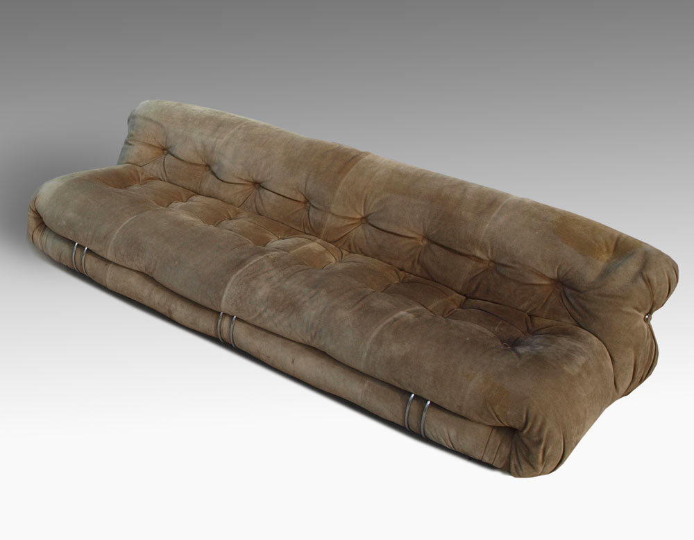 TOBIA AND AFRA SCARPA SORIANA SOFA: 1970's Italian designer chrome and suede leather sofa, approx. 93''l. x 25''h. x 36'' deep.
