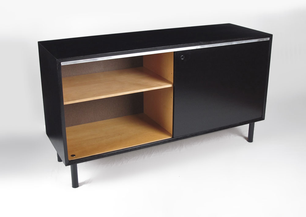 GEORGE NELSON FOR HERMAN MILLER SIDE CABINET: Ebony finished cabinet with double sliding doors and interior shelves. Partial foil label. Approx. 31 1/4''h. x 56'' x 18 1/2''.