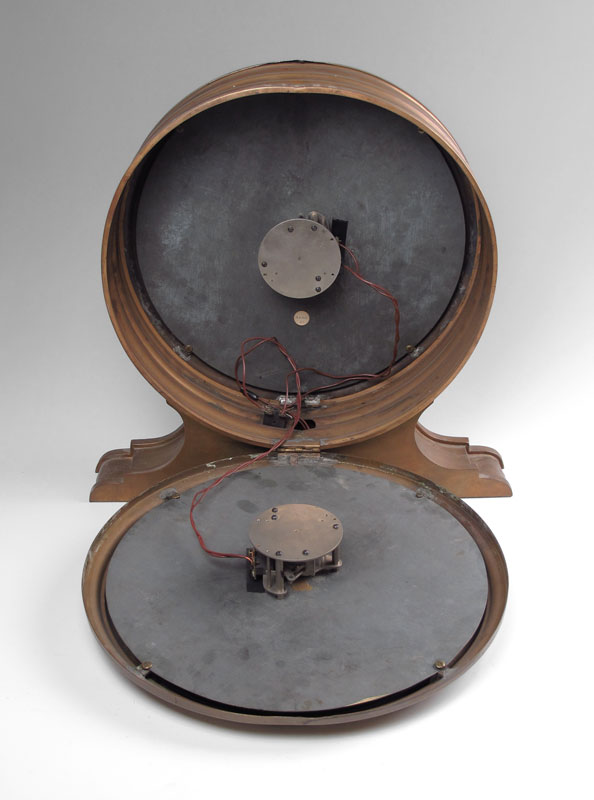 CONDITION: Note chips to paint on dials, scratches to one crystal, minor bend to brass at top openings.