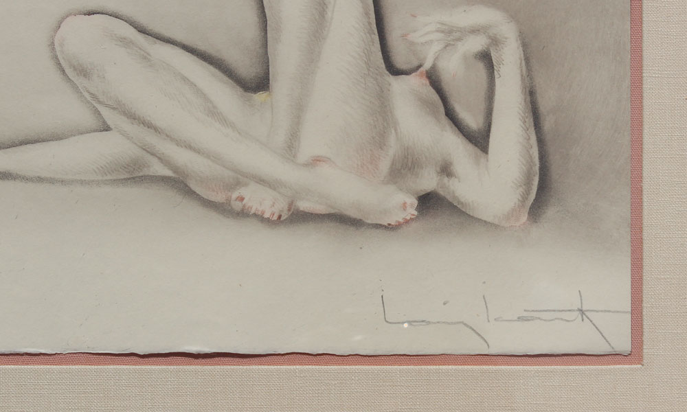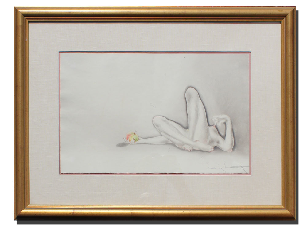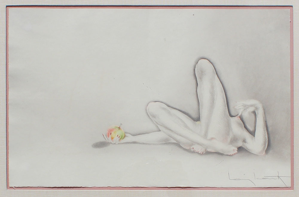 ICART, Louis, (American, 1888-1950): Nude with fruit, Etching, from ''Le Vie des Seines'', pencil signed (probably not by him), sight size 11'' x 17 1/4'', framed 20'' x 27''.