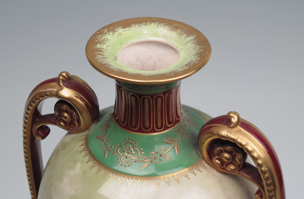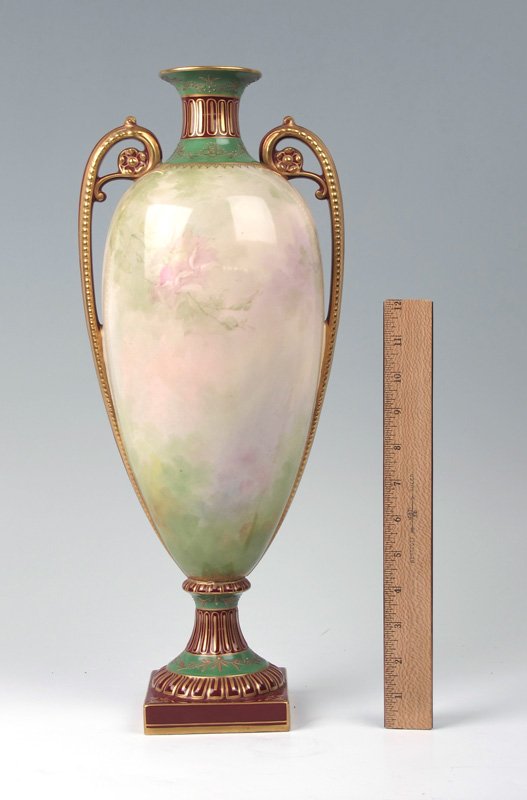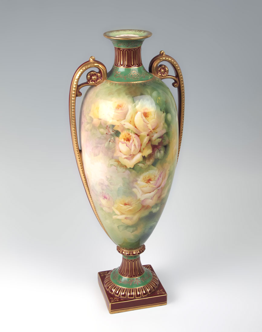 ROYAL BONN HAND PAINTED VASE: 19'' tall. Beautiful handpainted rendition of roses, signed M. Dirkmann.