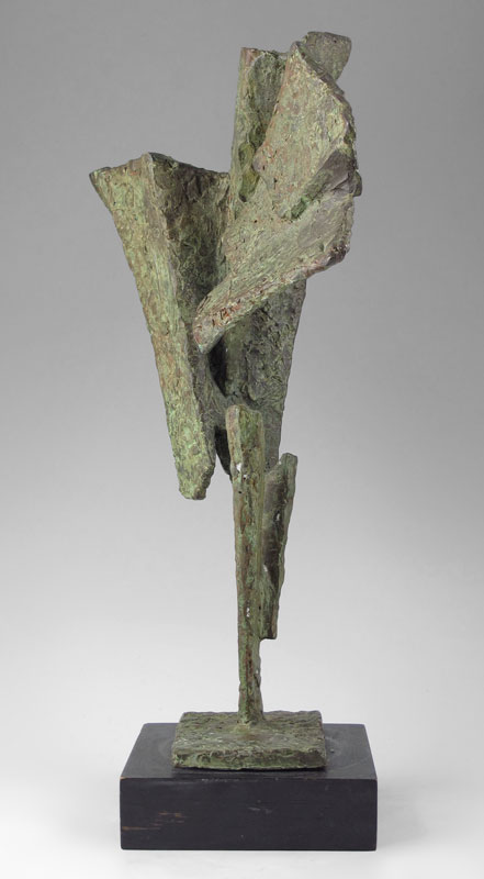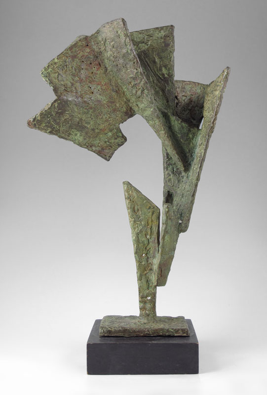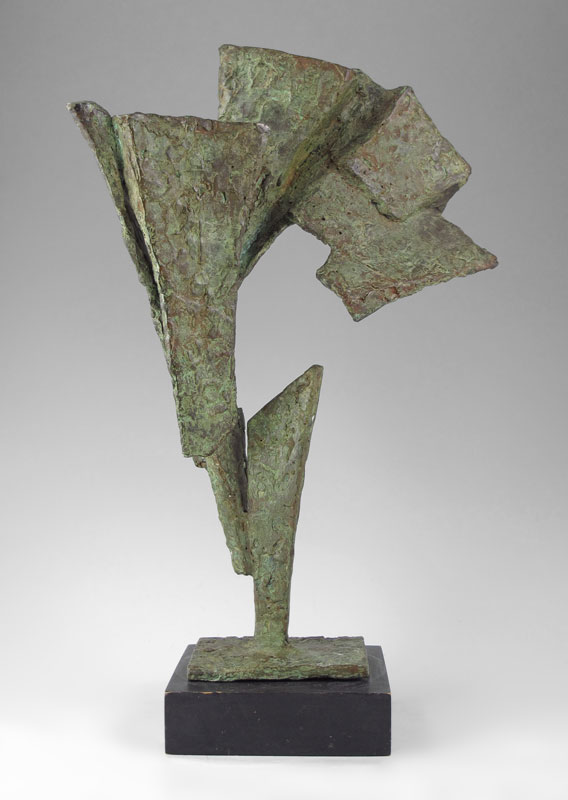 EMERY, Lin, (American, 1926-): Untitled Abstract Sculpture, Bronze, 18'' h., 13 3/4'' at it's widest part, 19 1/2'' overall height with painted wood plinth (missing some paint), incised signature in the bronze.
