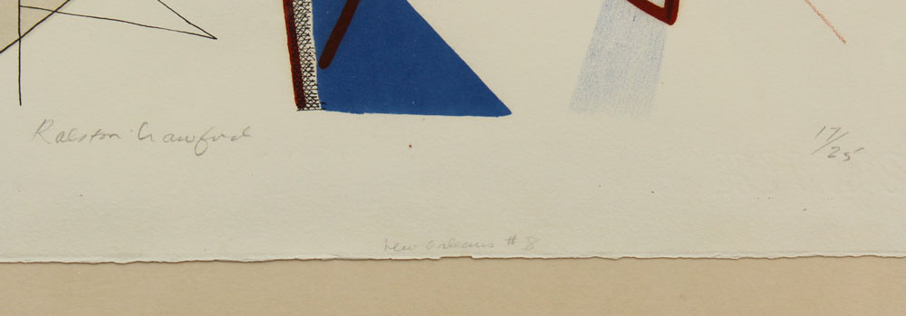 CRAWFORD, Ralston, (American, 1906-1978): ''New Orleans #8'', Lithograph, 22 1/4'' x 14 3/4'', pencil signed lower left, titled lower margin, numbered lower right 17/25, float mounted, framed, 29'' x 22''.