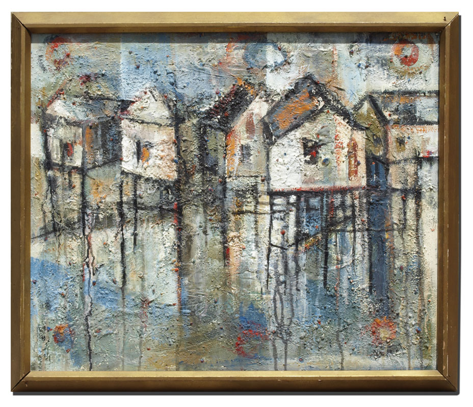 FARR, Charles, (American, 1908-): ''River Houses of Bangkok'', Oil/Masonite, 20'' x 24'', signed lower right, titled verso, period gilded frame with wear, 22'' x 27''.