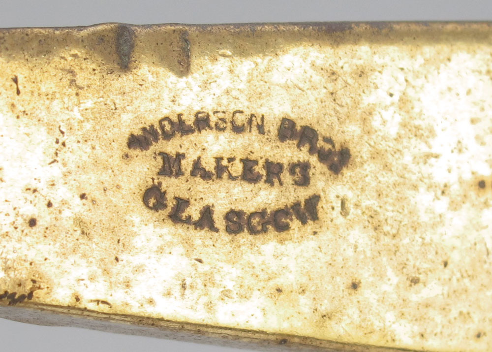 ANDERSON BROTHERS BRASS BALANCE SCALE: Cast iron and brass, marked Anderson Brothers Makers Glasgow, Patent Agate Balance. No weights. Measures 31 3/4'' h. x 17 1/2''.