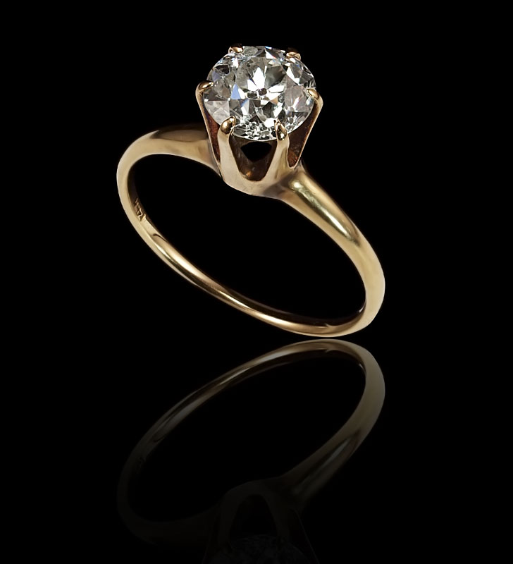 ESTATE 1.25 CT DIAMOND SOLITAIRE RING: An antique 14K yellow gold ring with an approx. 1.25 Ct Old European cut diamond, rated VS1 in clarity and I color. Prong set. Size 7. Weight 2.3 grams. Sold with current Florida Diamond Appraisers GIA graduates appraisal for $8,000.