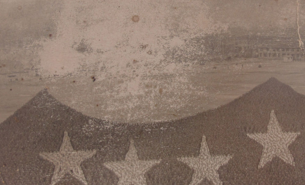 CONDITION: Note condition, 1) Fading, rubs to print, tear at top, creases along right edge. 2) Fading, stain in center, creases. Not examined out of frame.