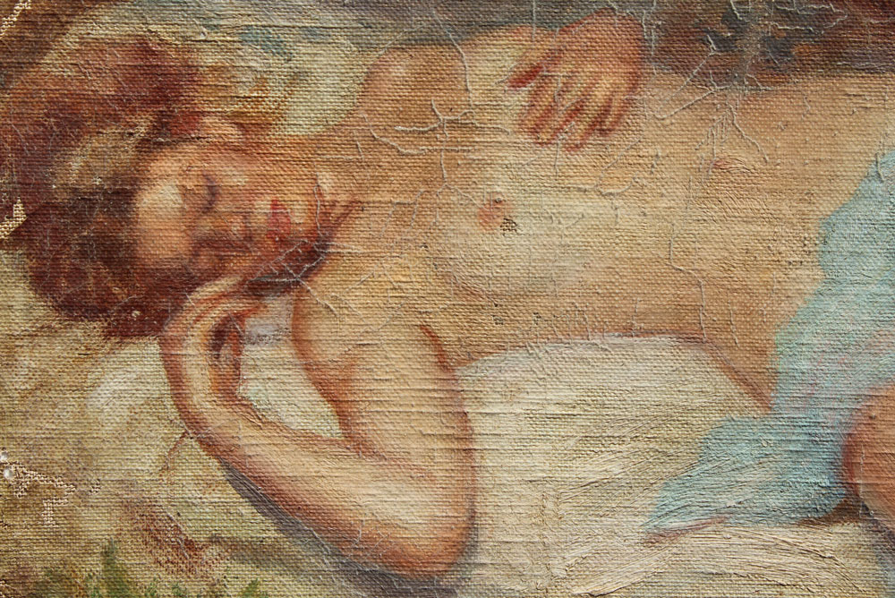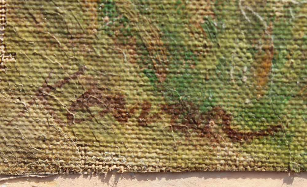 CONDITION: Canvas is laid on board, abrasions, paint fleck, will require a little work.