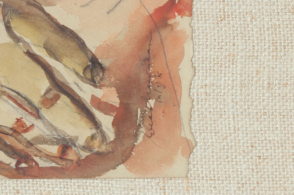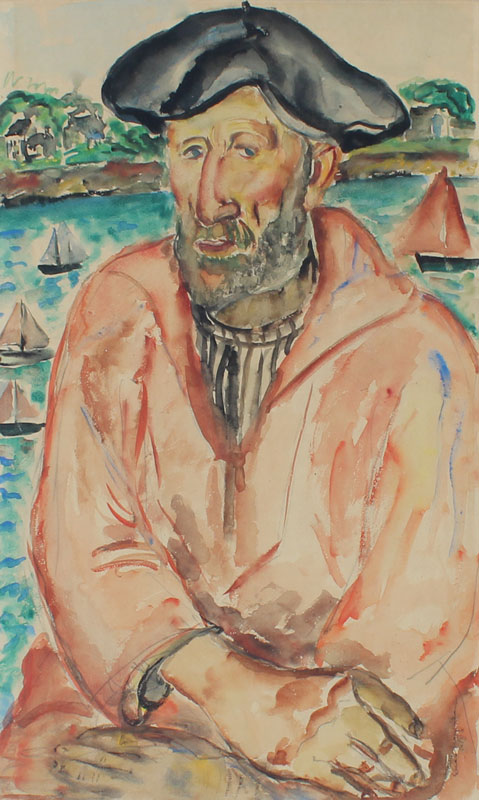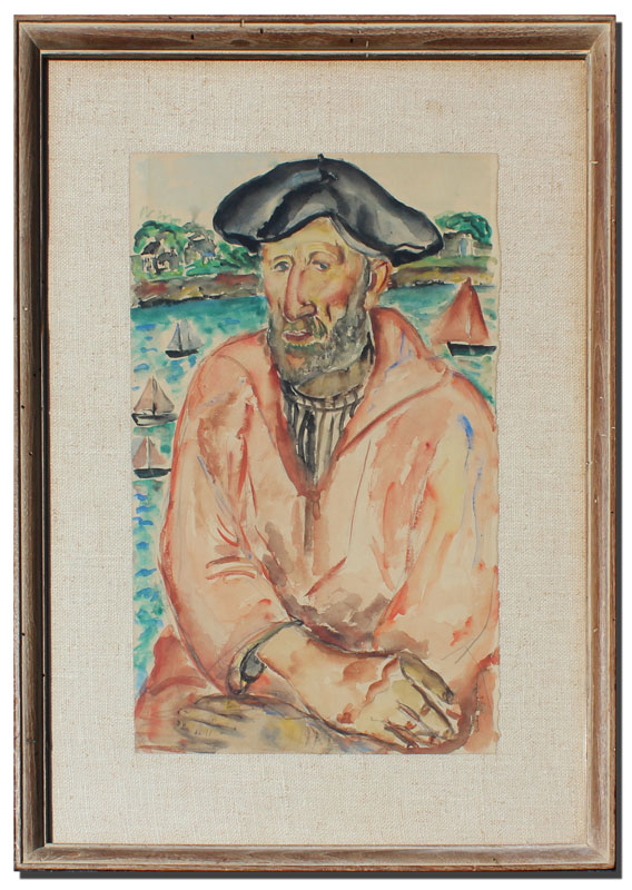 NEWMAN, Elias, (American, 1903-1999): Fishermen with Harbor View in the Background, Watercolor, 19 1/2'' x 12 1/2'', signed lower right, wooden frame, 27 1/4'' x 20 1/4''.