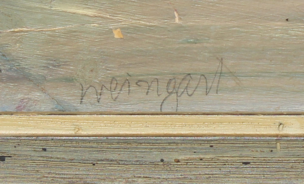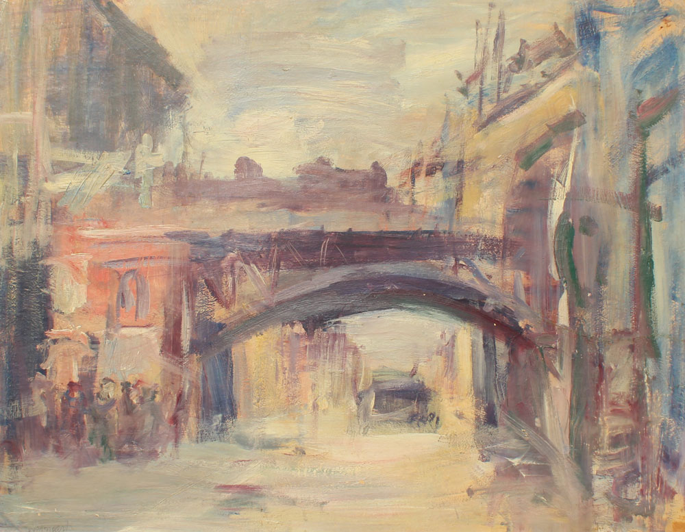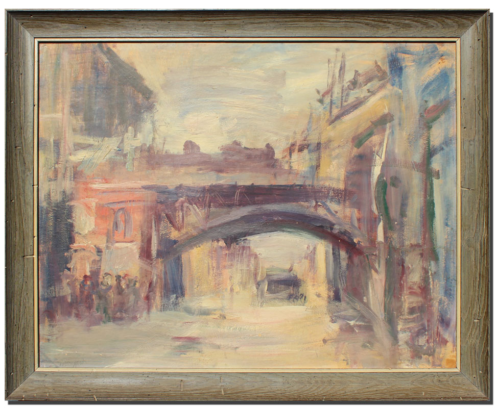 WEINGART, Joachim, (Polish, 1895-1942): Street Scene with Elevated Bridge, Oil/Masonite, 19 3/4'' x 25 1/4'', signed lower left, painted barnwood style frame, 22 3/4'' x 28''.