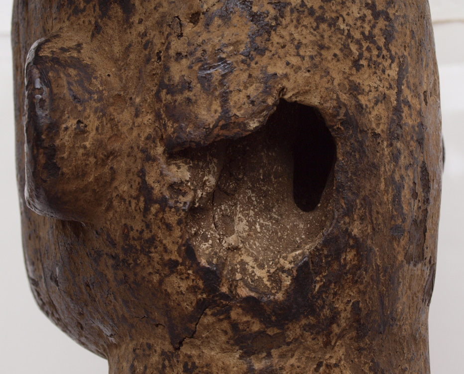 CONDITION: Hole burrowed into head. Note all items from this estate have been recently fumigated, may have natural imperfections or old repairs, old termite damage and age cracks.