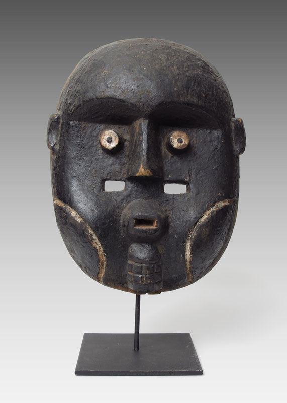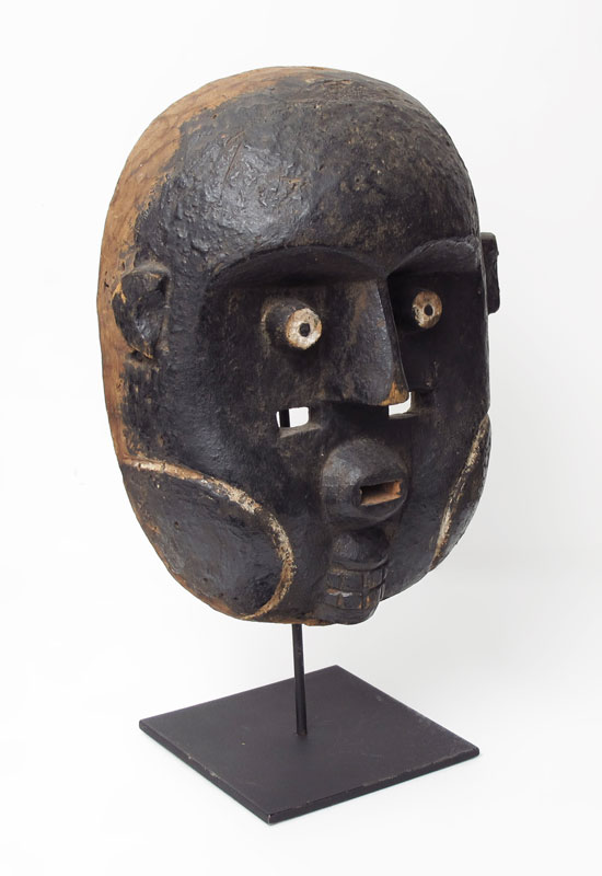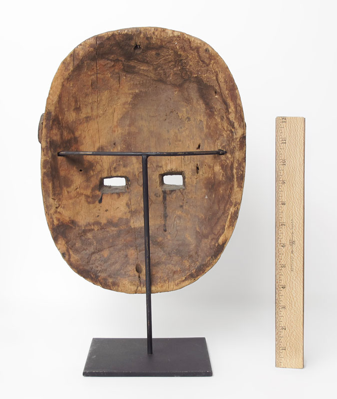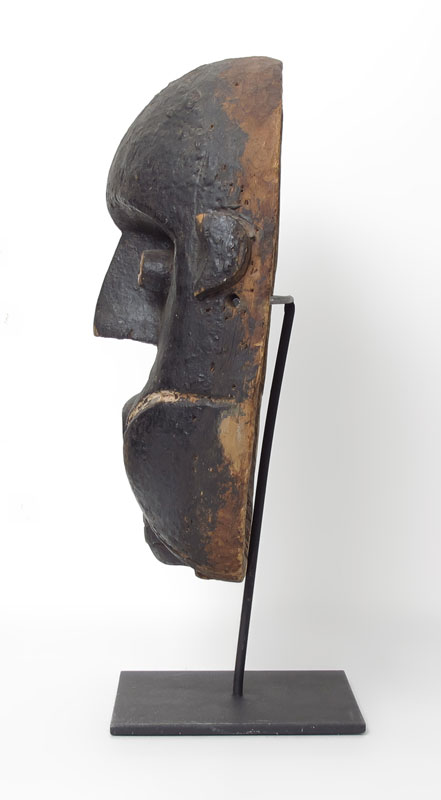 BAMILEKE? CARVED AFRICAN MASK: 11 3/4'' x 9 1/2''. Sold with metal stand.