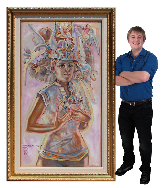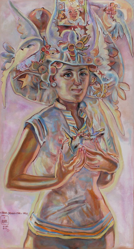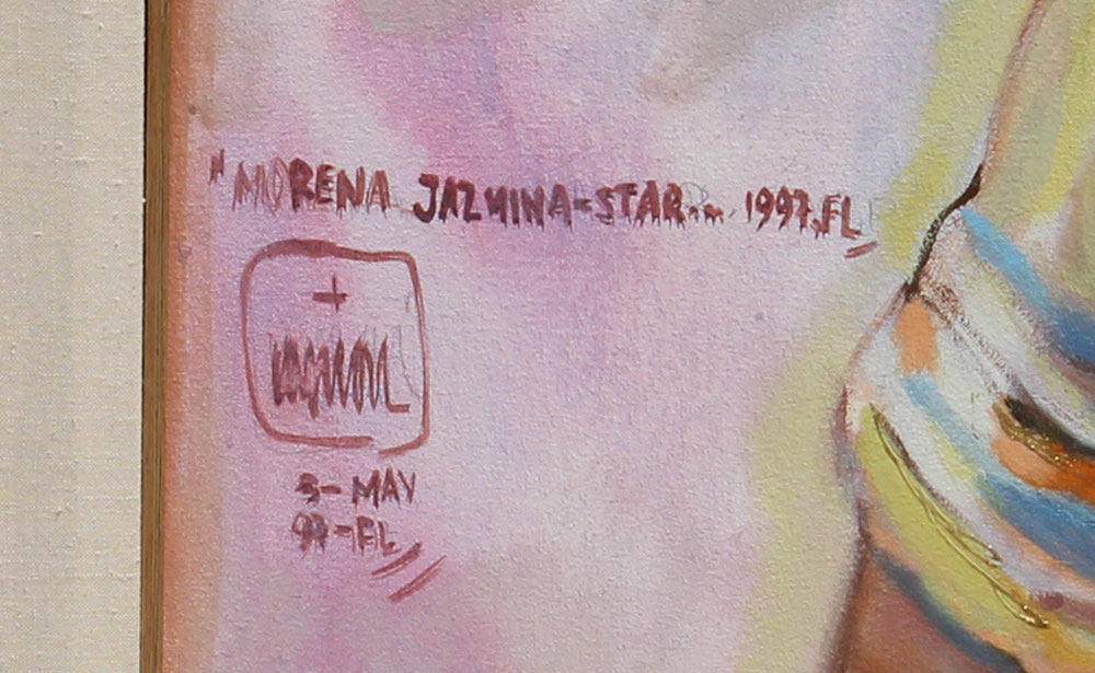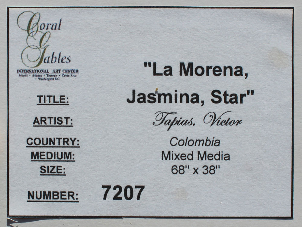 TAPIAS, Victor, (Colombian, 20th C.): ''La Morena, Jasmina, Star'', Mixed Media, 68'' x 38'', signed lower left and dated 1997, framed, 80'' x 50'', label affixed verso.