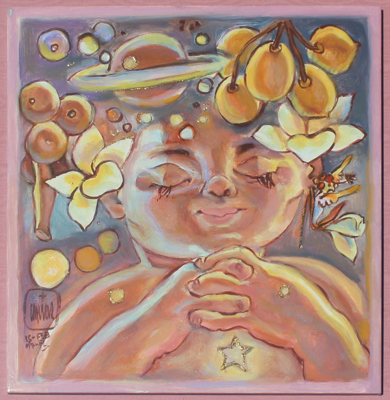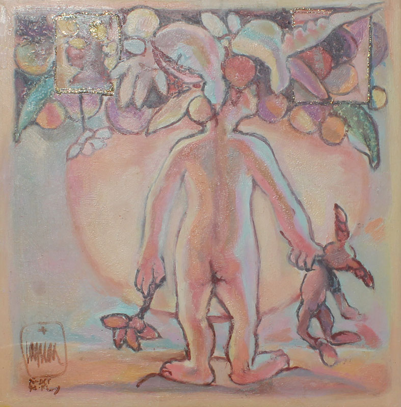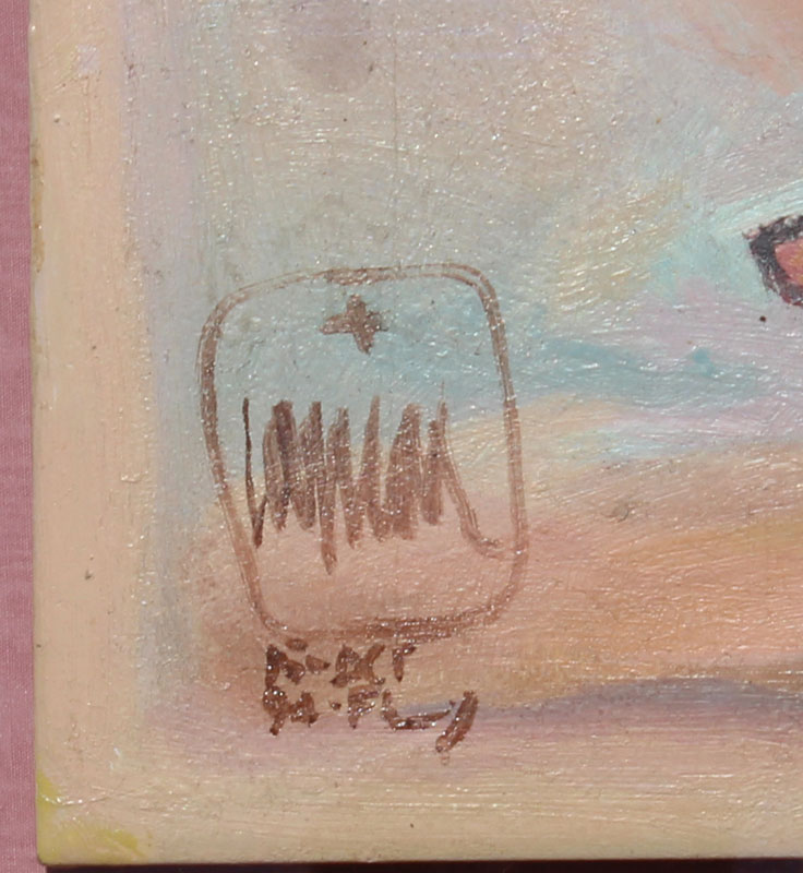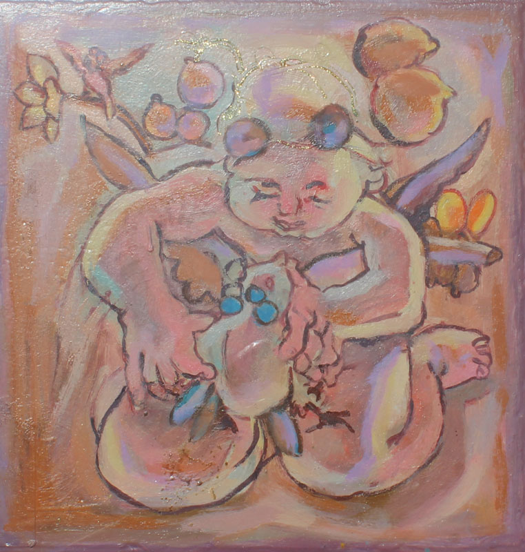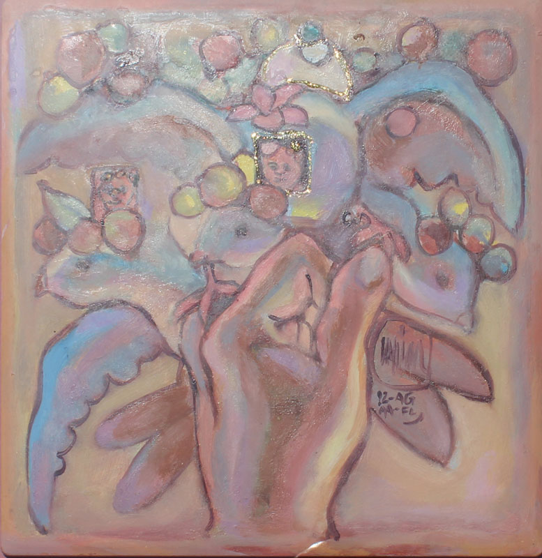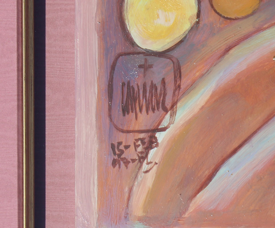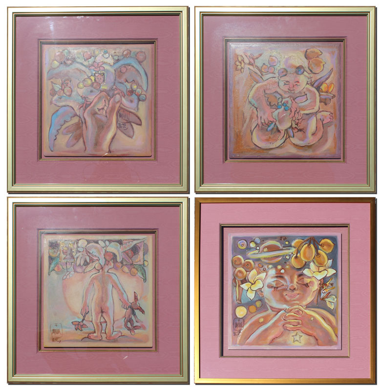 TAPIAS, Victor, (Colombian, 20th C.): Four Framed Painted Terracotta Tiles, Largest is a Picture of Child with Clasped Hands and Closed Eyes, 17 1/2'' x 17 1/2'', signed and dated 93?, custom matting and framing, 28'' x 28''. The others depict Biblical Themes, 12 1/2'' x 12 1/2'', signed and dated '99, custom matting and framing, 21'' x 21''.