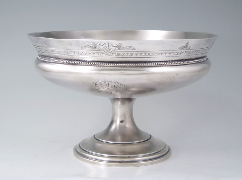 WHITING STERLING FOOTED CENTER BOWL: Engraved rim, monogrammed L & N W. 6'' h. x 9 3/8''. Approx. 20.2 troy oz.