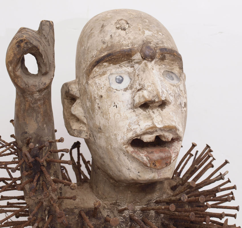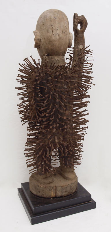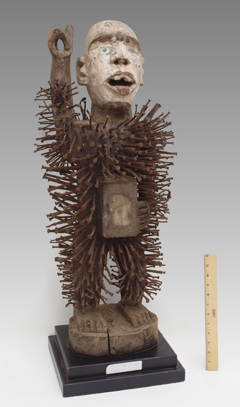 CARVED AFRICAN VILI NKISI FIGURE NAIL FETISH DEMOCRATIC REPUBLIC OF CONGO: 34 1/2'' x 14'' x 12 1/2''