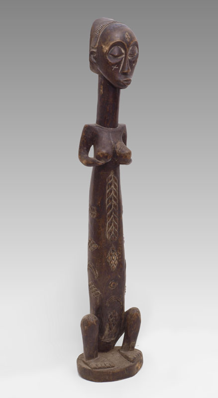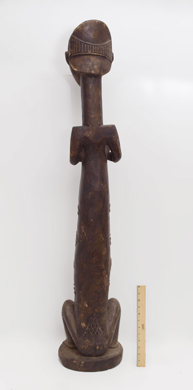 CARVED AFRICAN LUBA ANCESTRAL FIGURE DEMOCRATIC REPUBLIC OF CONGO: 47'' x 10'' x 8 1/2''
