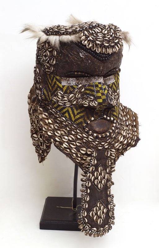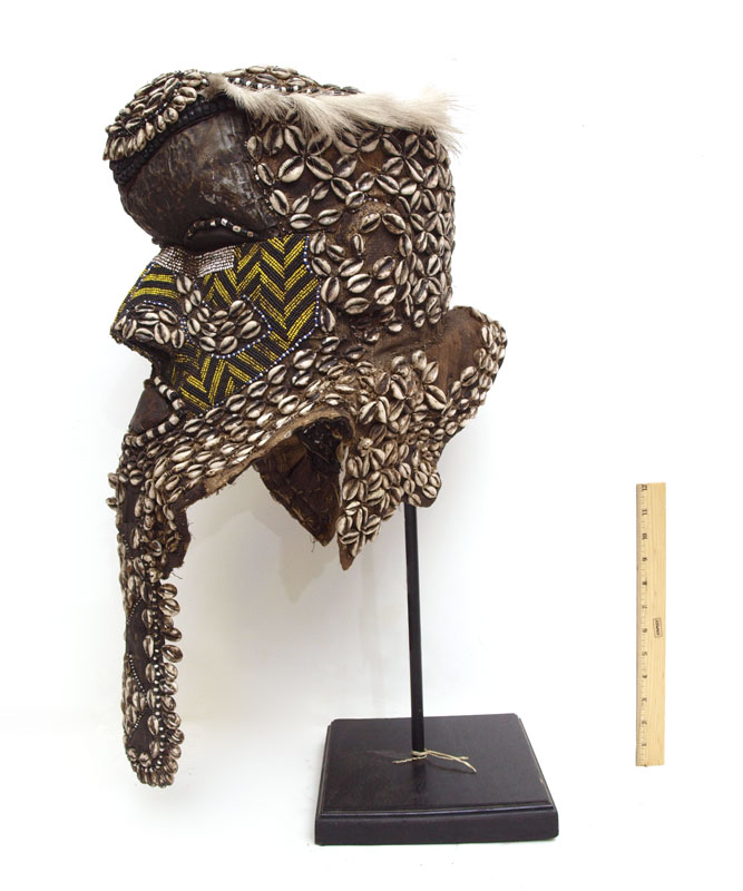 CARVED AFRICAN KUBA BWOOM MASK DEMOCRATIC REPUBLIC OF CONGO: On stand 29'' x 13'' x 18''